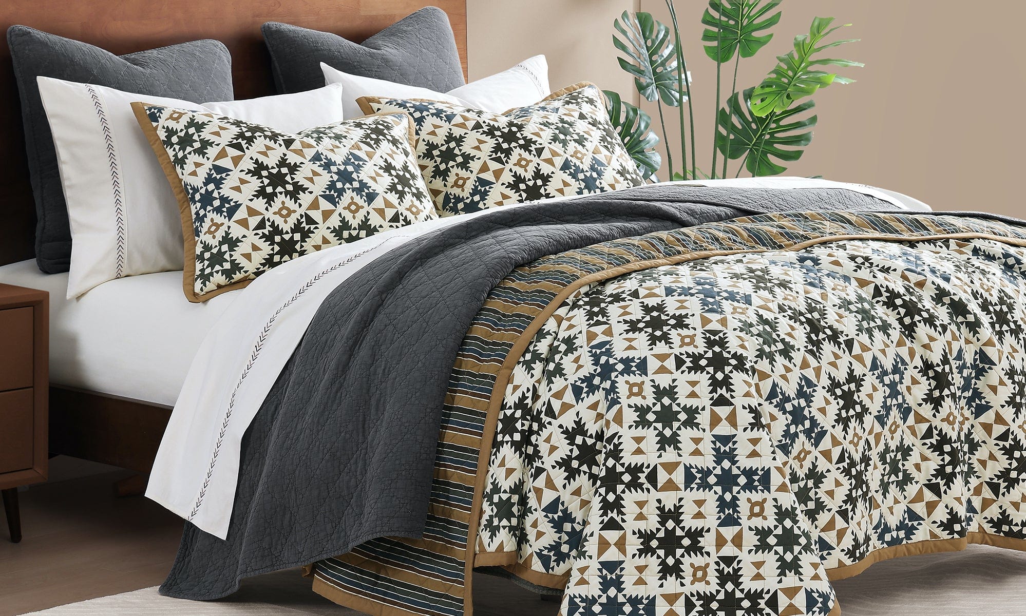 Lighter comforters with rustic character—fresh patterns and easy layers for the season’s turn