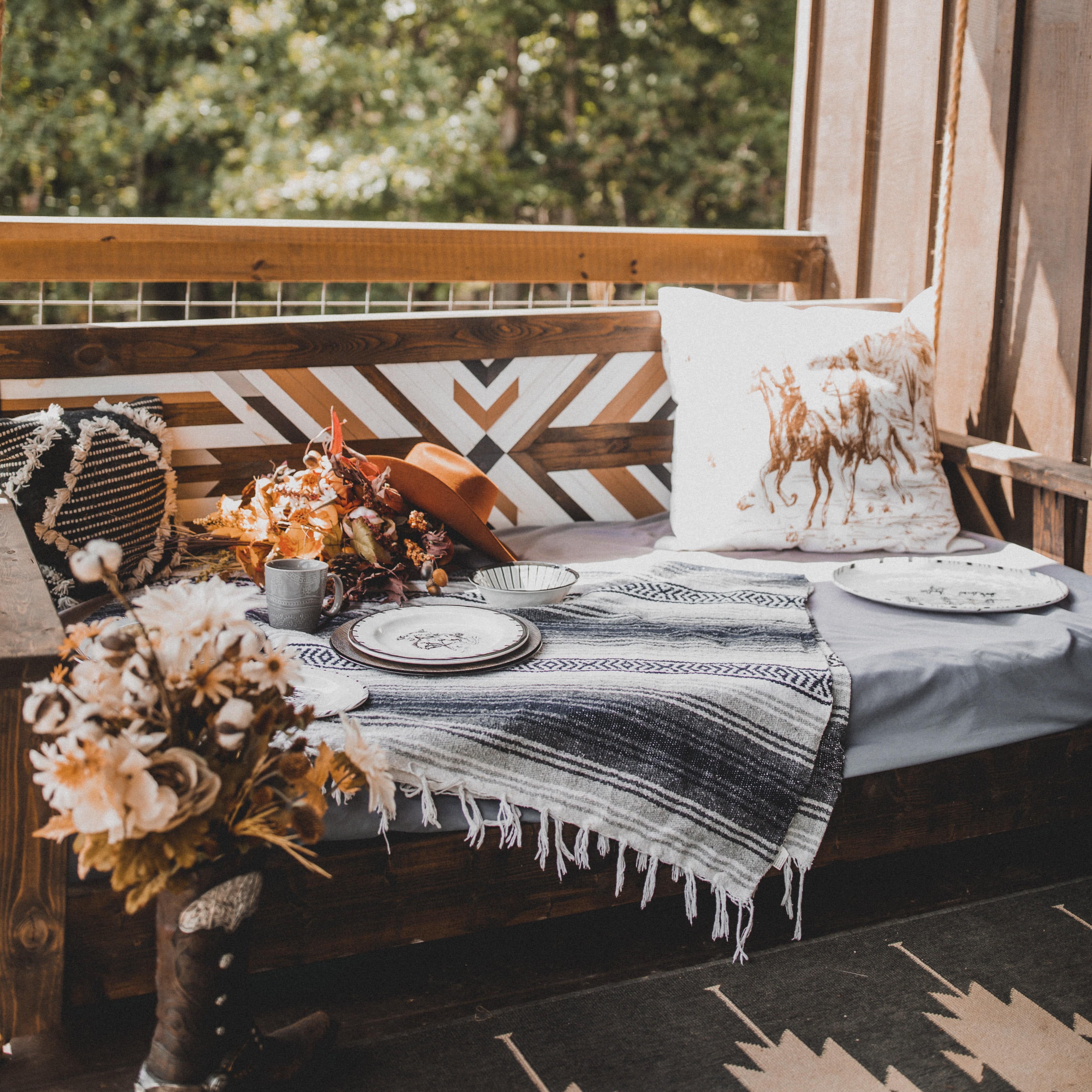A playful Western take on traditional Toile de Jouy, Ranch Life takes you on a heritage journey through the American frontier, replete with natural scenery of wrangling cowboys, grazing cow herds, and frolicking desert wildlife. This set comes in a versatile black-and-white colorway, accented with solid color and ticking stripe detailing. Pair with our Ranch Life Quilt Set and towel set to complete a rich and whimsical Western home.